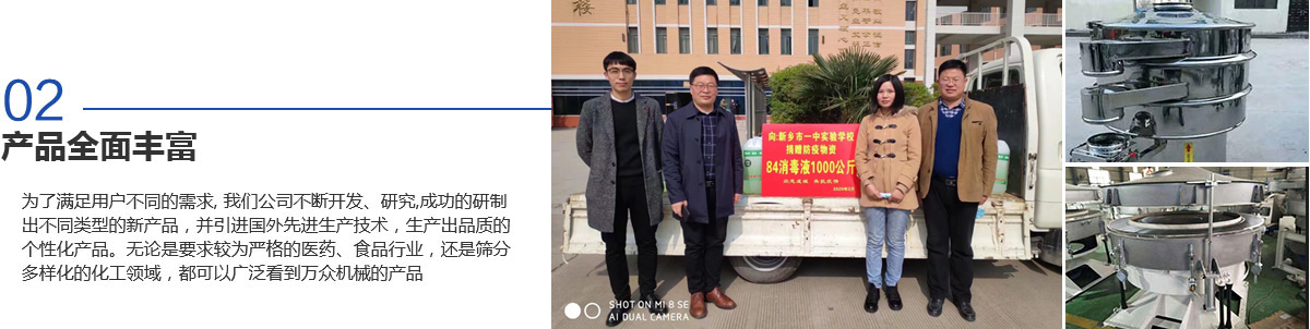 新鄉(xiāng)市萬眾機械設(shè)備有限公司是生產(chǎn)振動機械、篩分設(shè)備和過濾設(shè)備的專業(yè)廠家之一,擁有生產(chǎn)設(shè)備、雄厚的技術(shù)力量、完善的檢測手段、嚴格的管理體系。是河南省的商標(biāo)之一,被河南省科學(xué)技術(shù)廳頒定為高新技術(shù)企業(yè),為新鄉(xiāng)市“守合同重信用企業(yè)“。質(zhì)量信得過產(chǎn)品、質(zhì)量服務(wù)消費者滿意企業(yè)、合格產(chǎn)品等榮譽稱號。擁有自主進出口經(jīng)營權(quán),產(chǎn)品遍布各地,并遠銷北美、西歐及東南亞等地區(qū)。